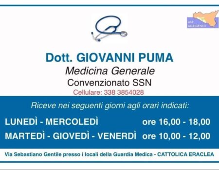 Il dott. Giovanni Puma è il nuovo Medico di Medicina Generale di Cattolica Eraclea